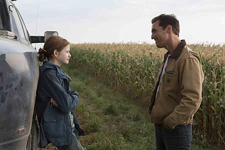 導演透過前面庫柏(馬修麥康納 飾演)跟女兒(瑪康莉佛伊 飾演)─墨菲的互動 讓觀眾知道父女倆感情很好