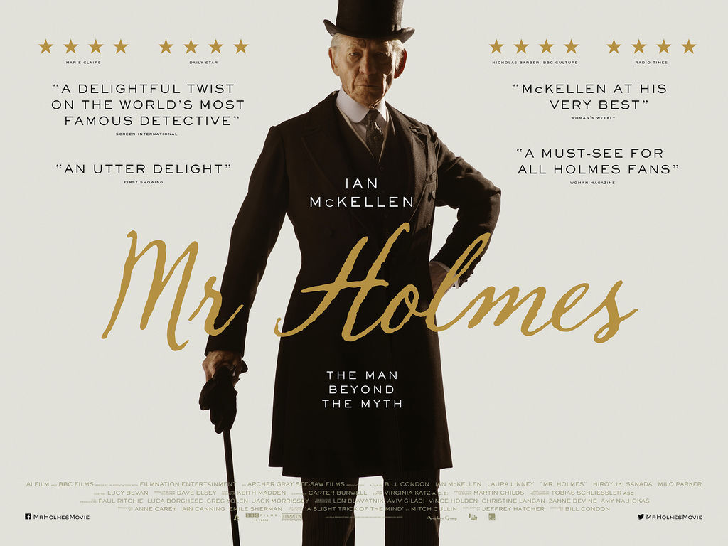 這部片看完給人一種文青小品的感覺 也有點像在看小說的感覺~ 雖然不像小說描述的很多、很細膩之類的 但看完真的給我這種感受 此片是在描述少了華生的福爾摩斯(伊恩麥克萊恩 飾演)的故事 也可說是脫下小蘿蔔、BC華麗外表且年老真實的福爾摩斯 片中有提到華生撰寫福爾摩斯的故事 使福爾摩斯受到讀者的喜愛與崇拜 也可說華生筆下的福爾摩斯是經過包裝的 而大家對福爾摩斯的認知是從書中得知的 並沒有親眼見過福爾摩斯…